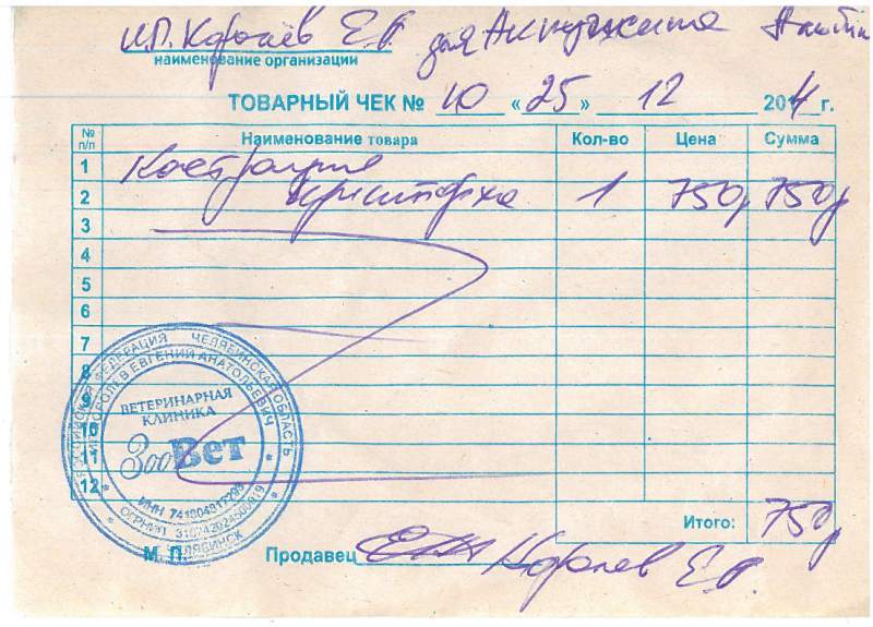 viewtopic.php?f=25&t=3632&p=30730#p30730, квитанция выложена в самой теме по кошке.