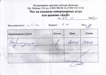 - 700р. Инге на стерилизацию беременной кошки из садов, темы нет, квитанция http://www.dogandcat.ru/node/91126;